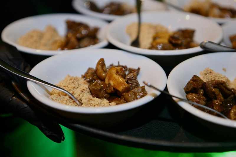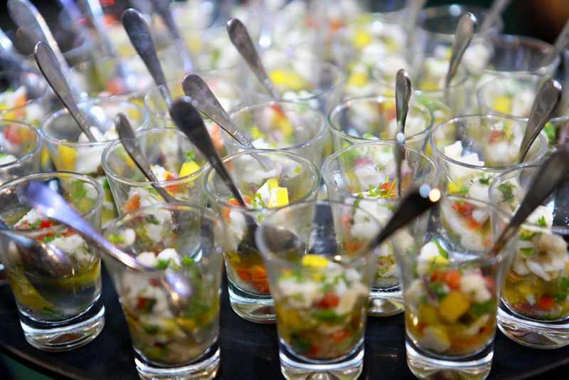 - Buffet Baiano com acarajé — tabuleiro ao vivo, vatapá, caruru, camarão seco, vinagrete de coentro e versões sem camarão.