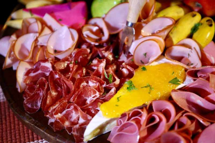 - Frios, antepastos e saladas — mesa elegante com queijos, charcutaria, pães de fermentação natural, caponata, tapenade, legumes assados, folhas e vinagretes aromáticos.