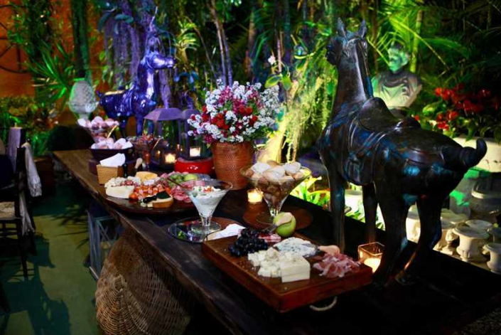- Apresentações integradas ao décor: louçaria, alturas cênicas e flores que transformam o buffet em parte do cenário.